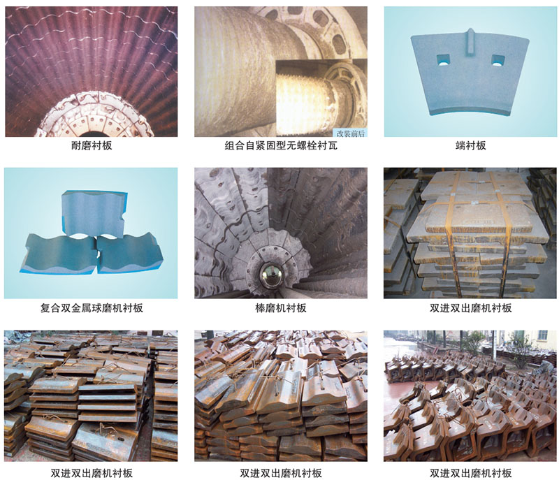 襯板硬度高,可和高硬度的鋼球相匹配,也可根據不同工況,設計不同硬度的襯板,減少鋼球消耗量。襯板的壽命延長,不變形,減少了維修量和大修次數,減輕了工人勞動強度,降低了成本。